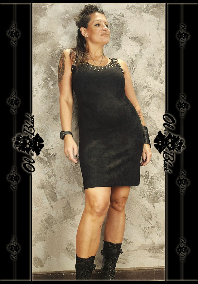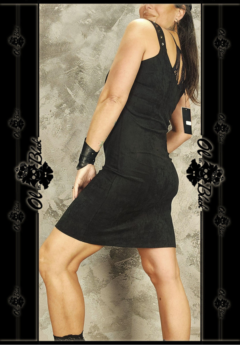 VESTIDO ANTELINA NEGRO CON DECORACIONES DORADAS EN ESCOTE