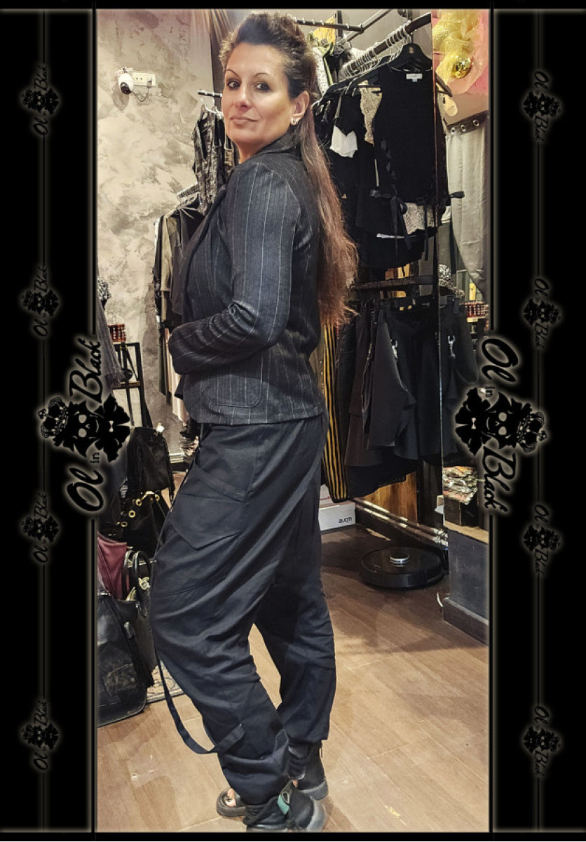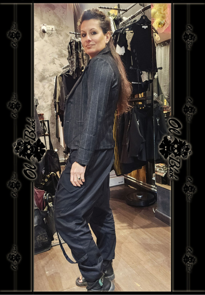 CHAQUETA RAYAS CON BOLSILLOS Y TEJIDO ELÁSTICO