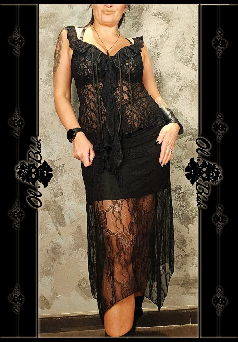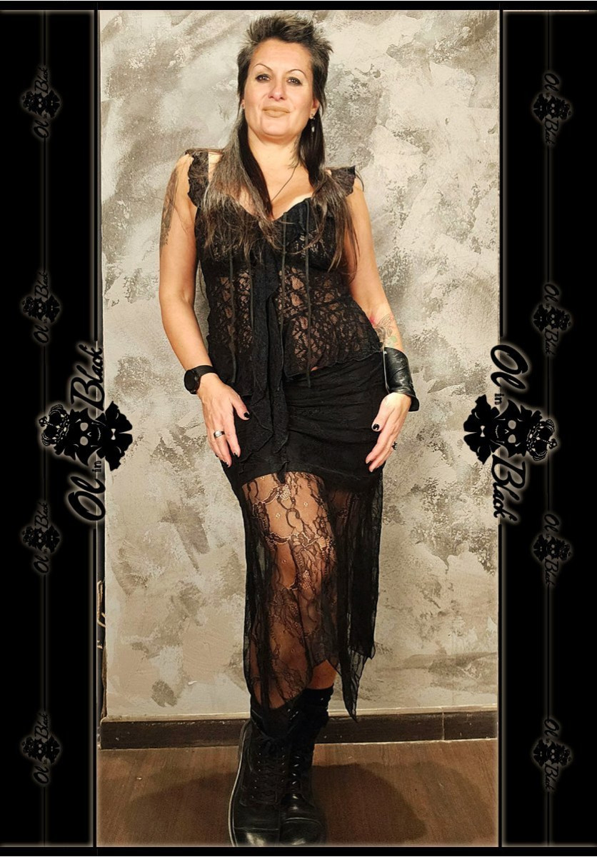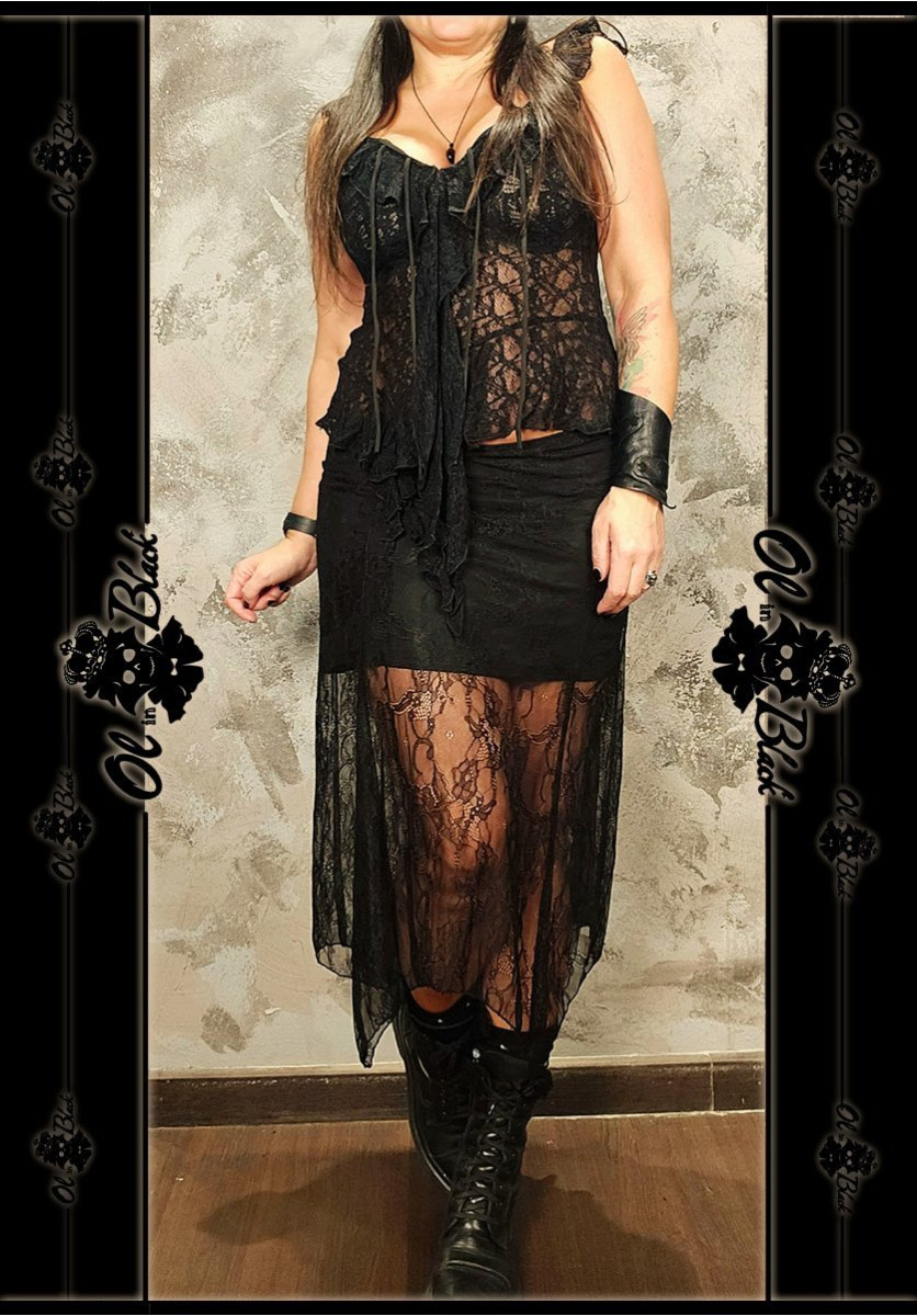 FALDA MIDI ENCAJE CON BAJO DESIGUAL