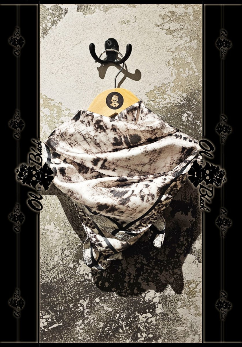 PAÑUELO SEDA 70X70 JASPEADO EN NEGRO Y MAQUILLAJE.