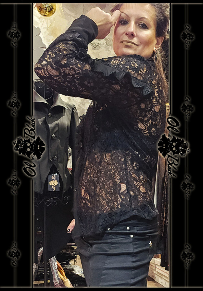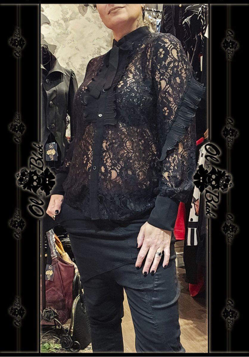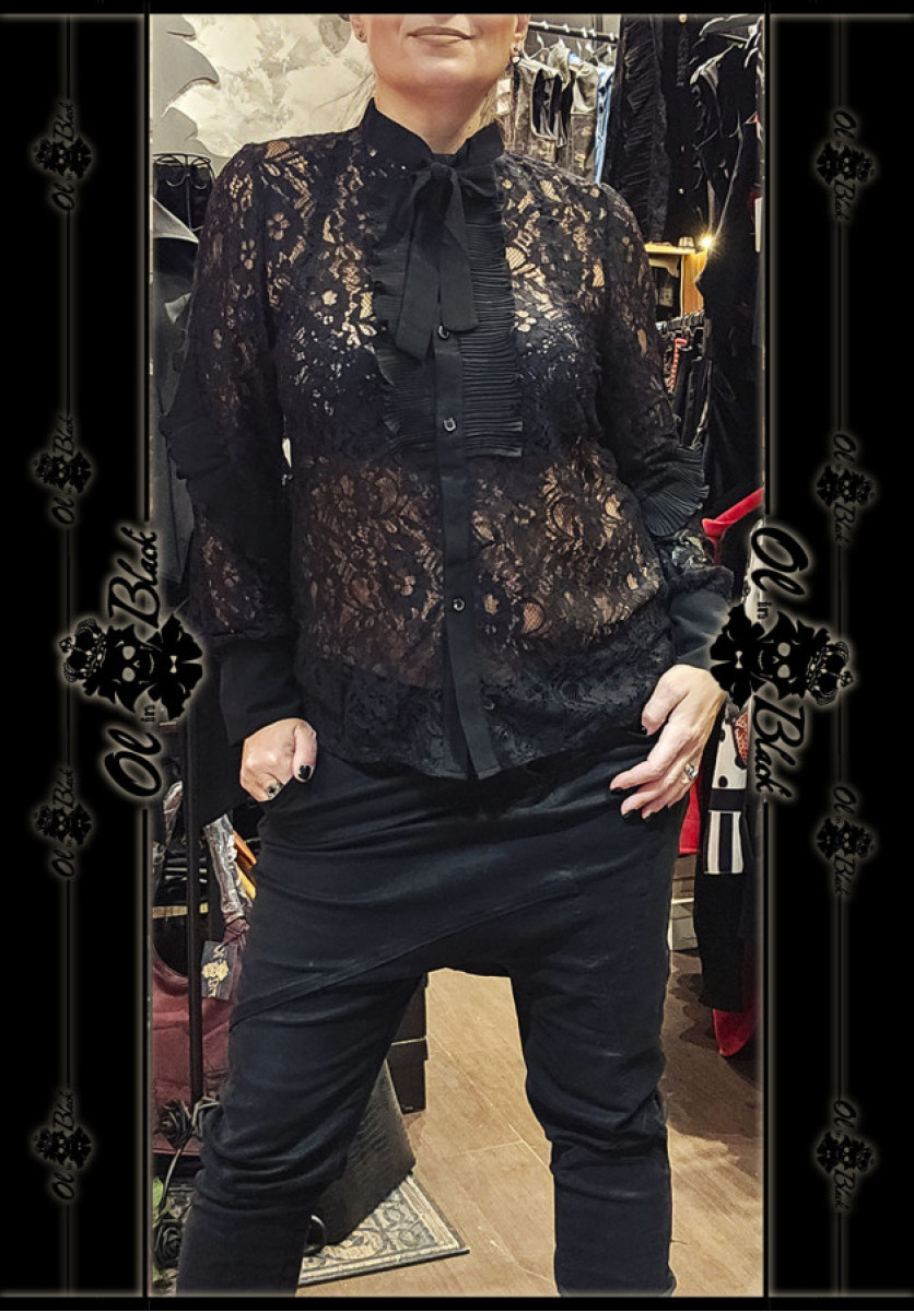 CAMISA DE ENCAJE NEGRA CON LAZADA.