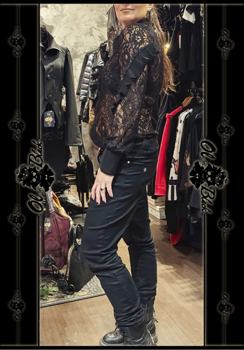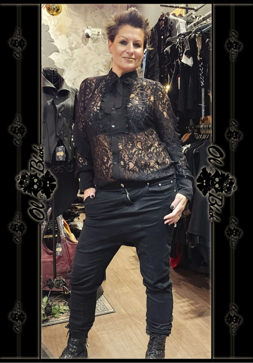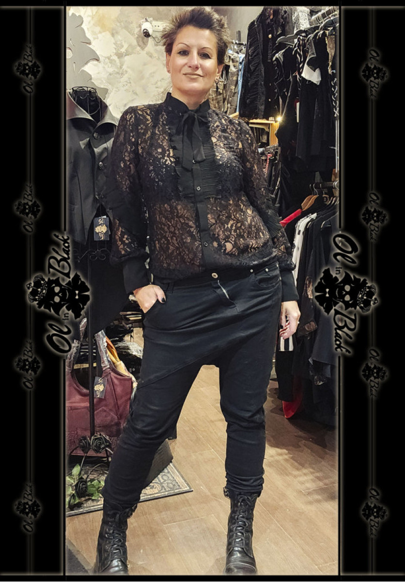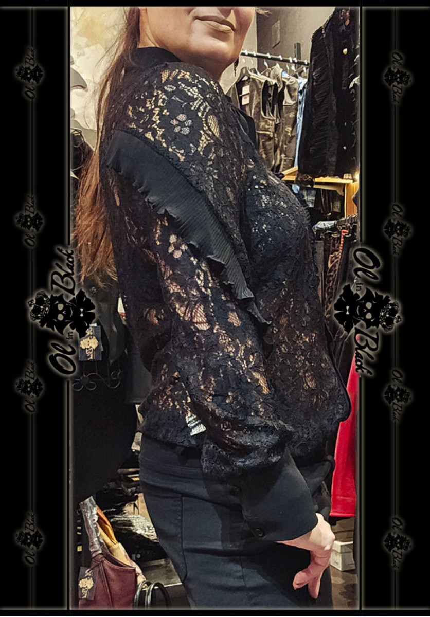 CAMISA DE ENCAJE NEGRA CON LAZADA.
