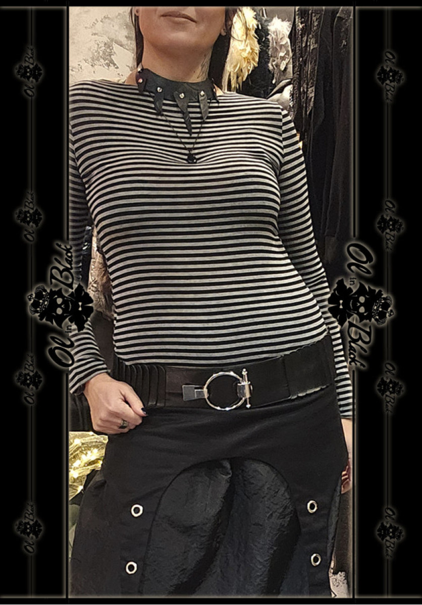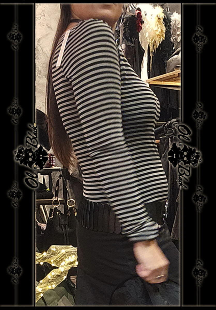 Camiseta de manga larga de Mezcla de Cachemira a rayas escote barco.